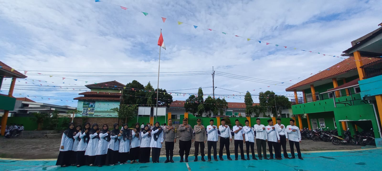 Cilegon – Bhabinkamtibmas Polsek Ciwandan Dampingi Kasat Binmas Polres Cilegon Polda Banten IPTU Muhyidin Pimpin Upacara Dan Menyambangi MTS & MA Dikelurahan Tegalratu Kecamatan Ciwandan, Menyampaikan Pesan-pesan Kamtibmas Dan Memberikan Imbauan, Senin (24/11/2025).