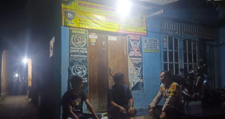 Babinkamtibmas menyambangi warga di warung kopi Bhabinkamtibmas yang terletak di lingkungan Pacinan, Kelurahan Pabean, Kecamatan Purwakarta, Kota Cilego