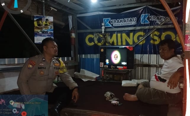 -POLRES CILEGON-Polda Banten. Bhabinkamtibmas menyambangi Pos Ronda/Siskamling di Komplek D- Flat, Komplek Perumahan KS, Kelurahan Kebon Dalem, Kecamatan Purwakarta, Kota Cilegon. Dalam kegiatan ini, Bhabinkamtibmas Aiptu Daryo Efendi menyampaikan himbauan kamtibmas kepada petugas Siskamling yang bertugas.Rabu.(26-11-2025).
