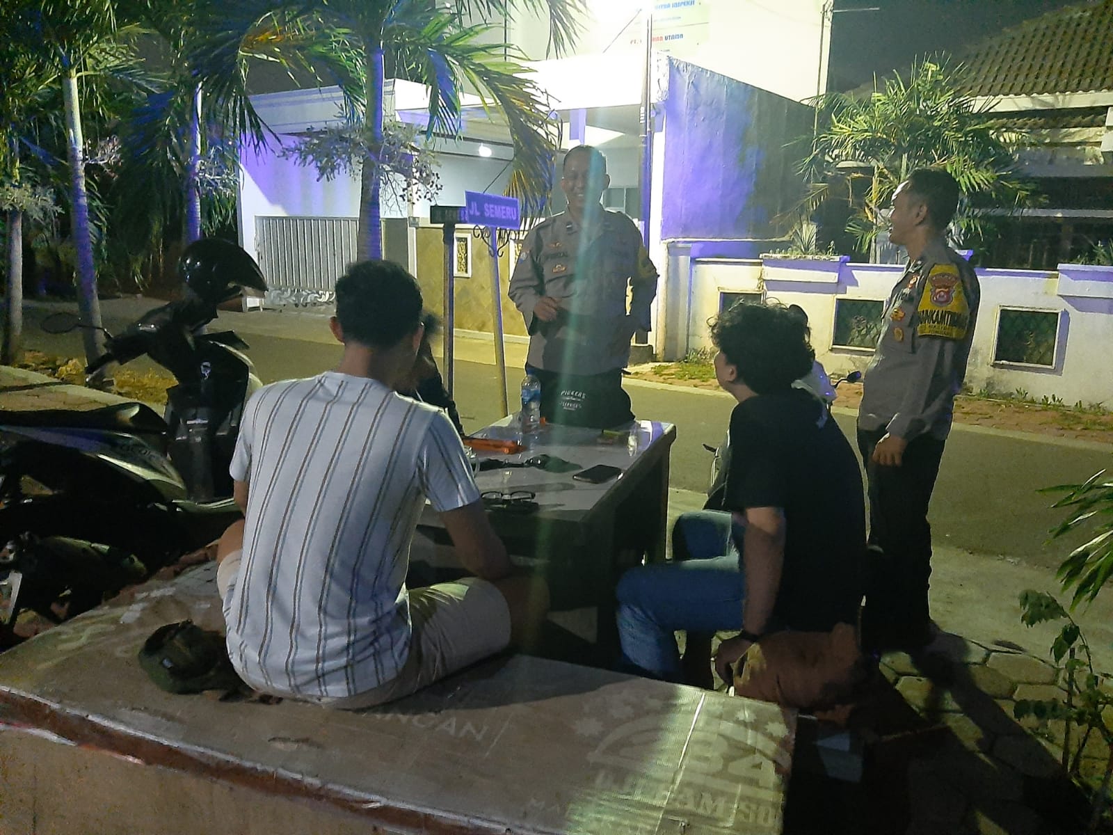 Anggota unit patroli ssmapta Polsek Cilegon sambangi ronda malam sampaikan pesan kamtibmas jaga keamanan dilingkungan wilayah hukum