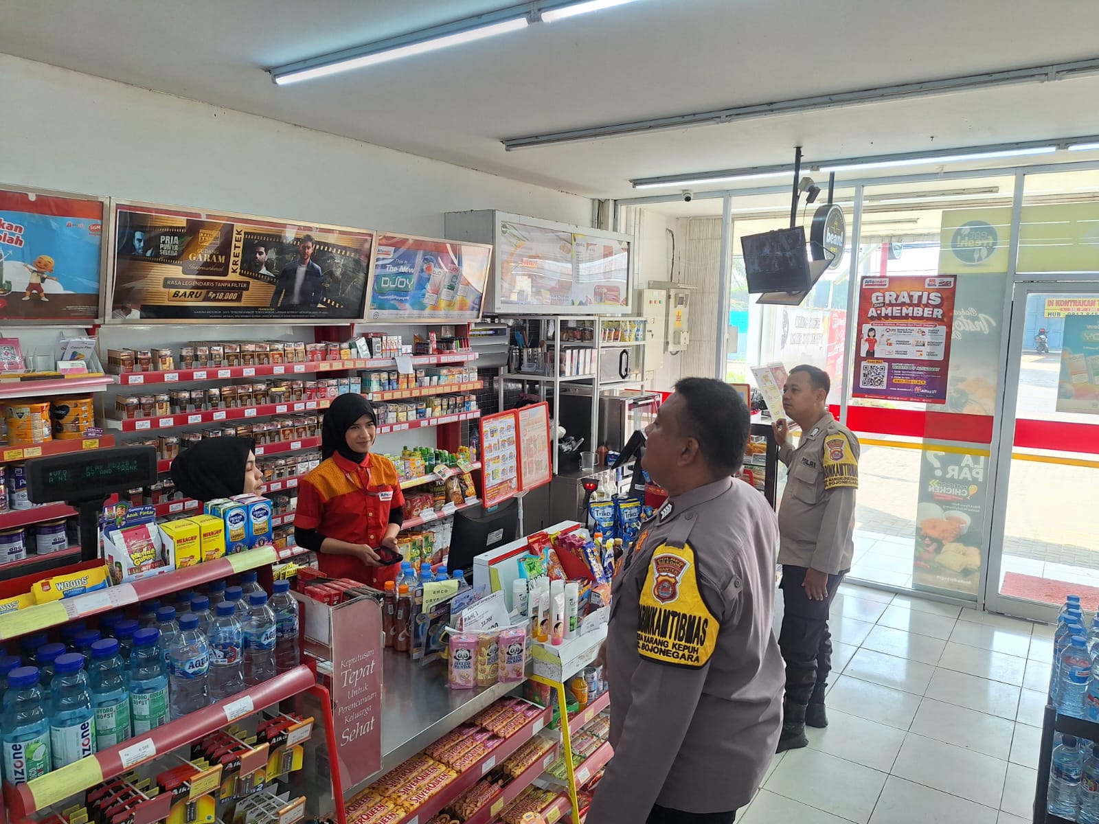 Ajak Karyawan Alfamart Jaga Kamtibmas,Bhabinkamtibmas Sambang Sejuk ke Pertokoan