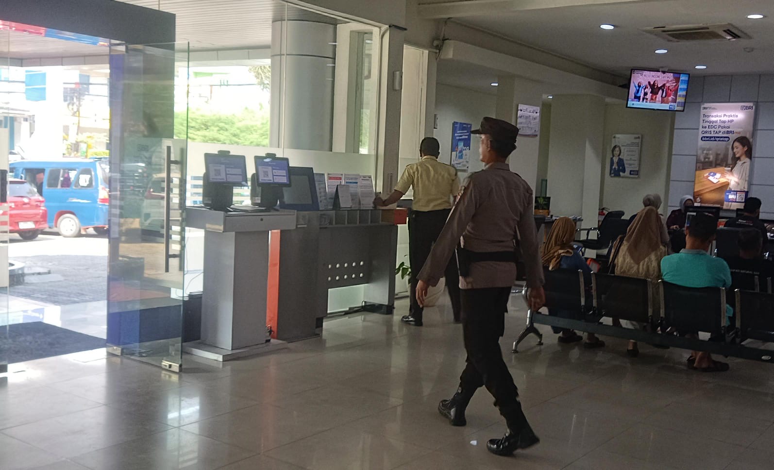 Pers satpamobvit melaksanakan pengamanan bank BRI
