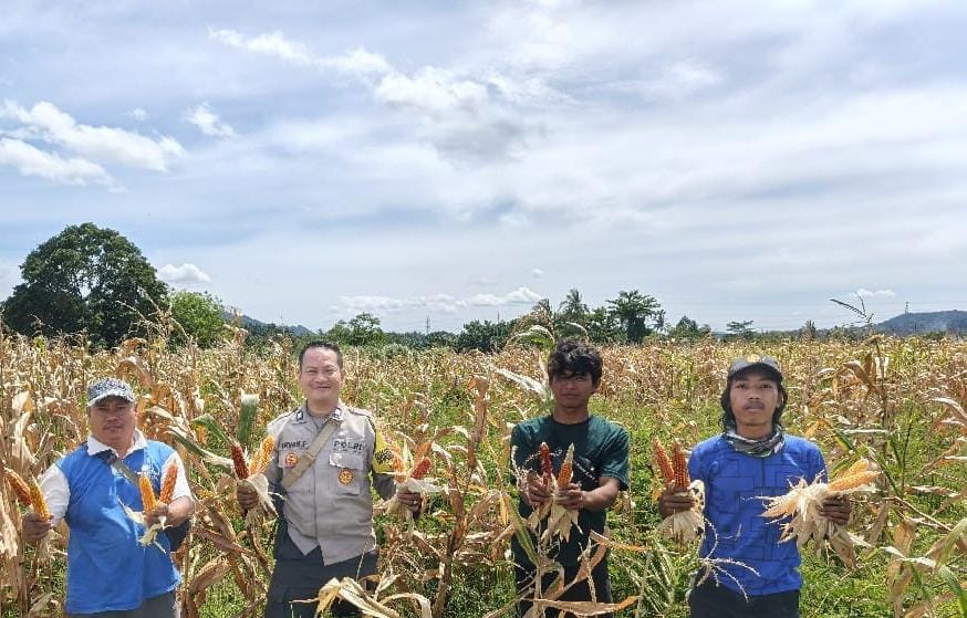 Bersama Para Poktan Polsek Anyar Melaksanakan Panen Jagung