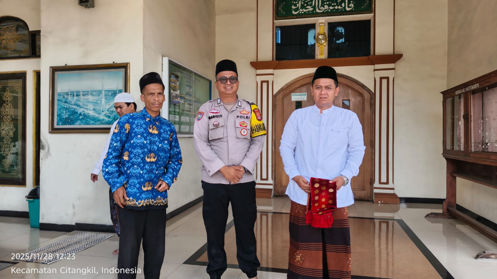 Cilegon - Bhabinkamtibmas Polsek Ciwandan Polres Cilegon Polda Banten Selesai melaksanakan Sholat secara berjama’ah dan Sampaikan Himbauan-himbauan Kamtibmas Kepada Masyarakat Jama'ah Yang ada Dimasjid, Jum'at (28/11/2025).