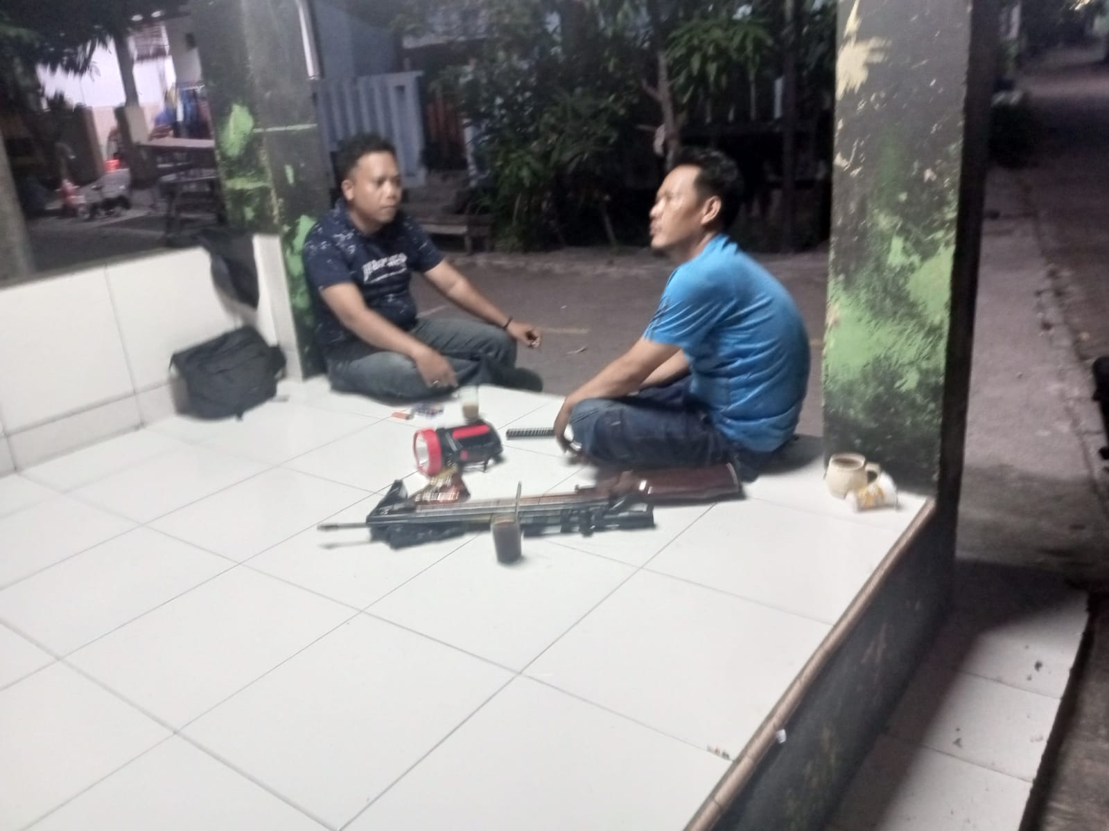 Personil sat intelkam melakukan koordinasi dengan tokoh pemuda kec. Purwakarta kota cilegon.