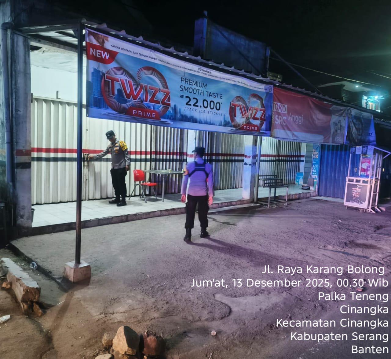 *Polres Cilegon* – Dalam Rangka Pencegahan Kejahatan Jalanan dan Memelihara situasi keamanan dan menjaga serta memberikan rasa aman dan nyaman di masyarakat,Salah satu upaya untuk mewujudkan hal tersebut sebagaimana yang dilakukan oleh Personil Polsek Cinangka Polres Cilegon Polda Banten melaksanakan giat patroli blue light malam hari hingga menjelang pagi, Sabtu (13/12/2025).