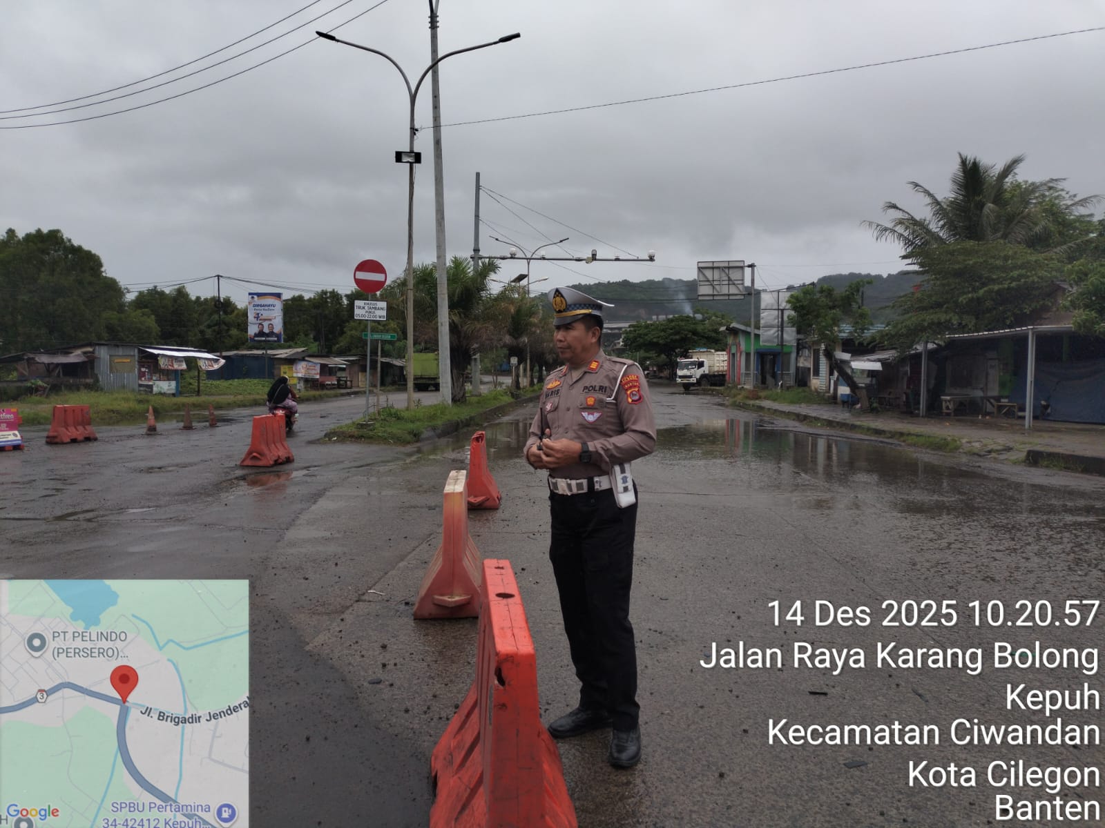 *Cilegon* - Personil Unit Lantas Polsek Ciwandan Polres Cilegon Polda Banten melaksanakan kegiatan monitoring jalur wisata di depan Pos Lantas JLS Ciwandan, Minggu (14/12/2025).