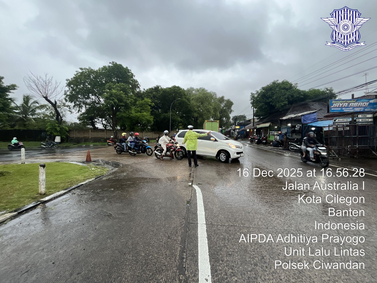 Cilegon - Guna Kelancaran Lalu-lintas Personil Unit Lantas Polsek Ciwandan Polres Cilegon Polda Banten melaksanakan pengaturan lalu-lintas di Simpang Beringin Ciwandan Pertigaan Kawasan Industri KSP/ KIEC I kelurahan Warnasari Kecamatan Citangkil Kota Cilegon, Rabu (17/12/2025).