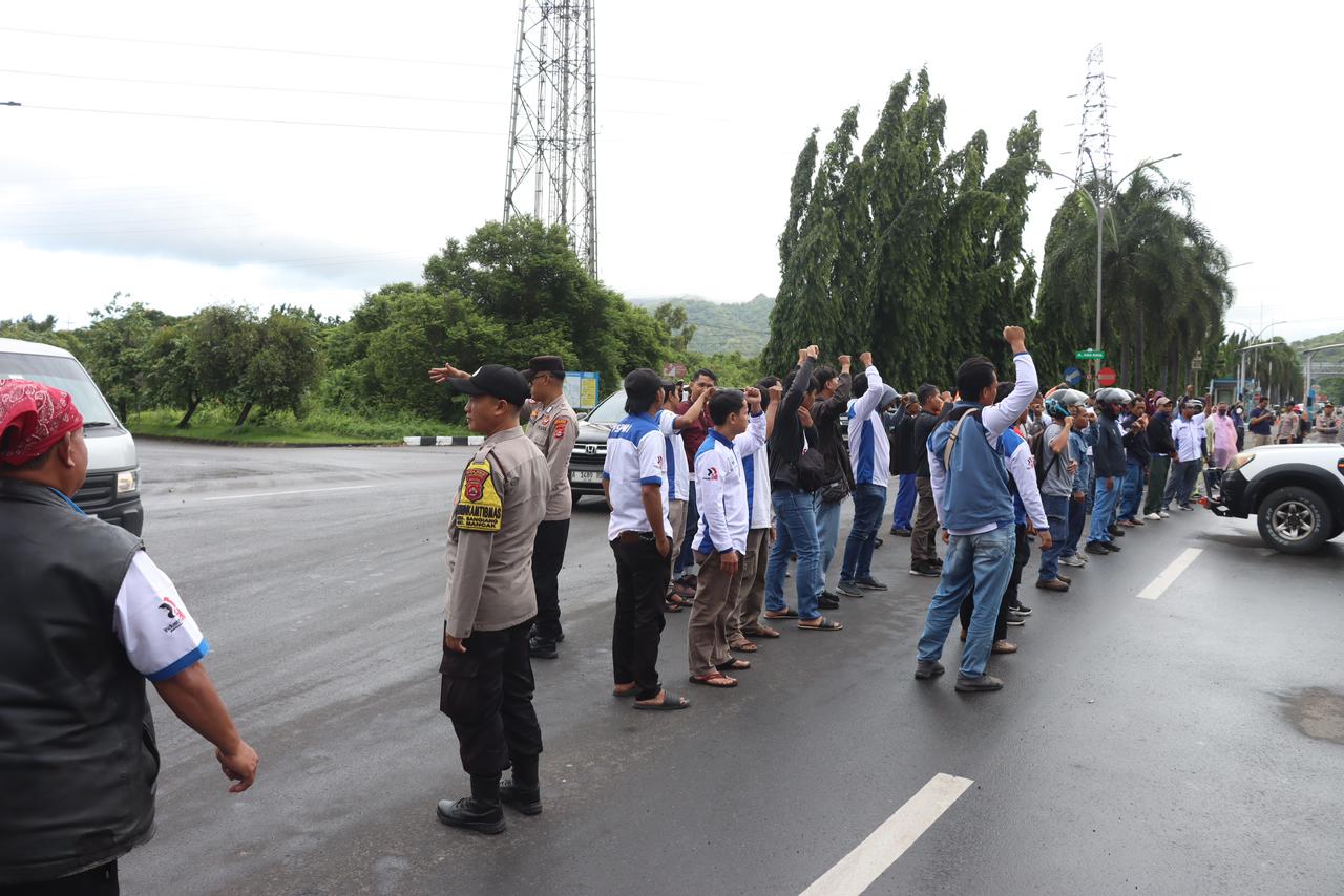 Aksi Unjuk Rasa FSPMI Kota Cilegon Berjalan Tertib di Bawah Pengamanan Polres Cilegon