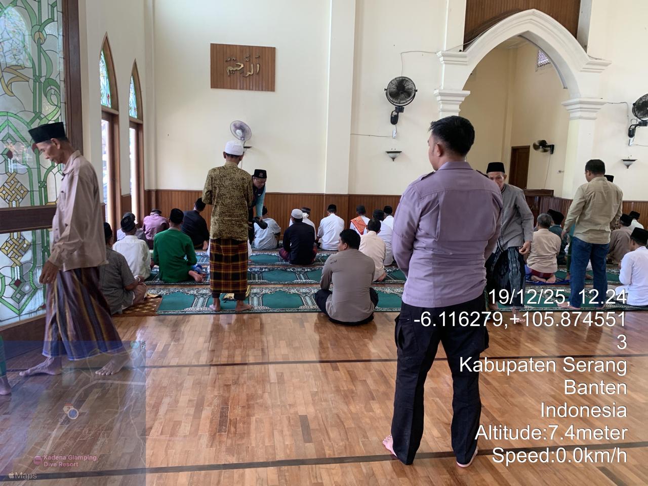 *POLRES CILEGON* - Kapolsek Cinangka Polres Cilegon Polda Banten dan Jajaran melaksanakan giat Juma't keliling dalam rangka silaturahmi menjalin kemitaraan dan menjaga Harkamtibmas di Desa Binaannya sebagai bentuk mendukung Program Quick Wins Presisi Polri, Jumat (19/12/2025).