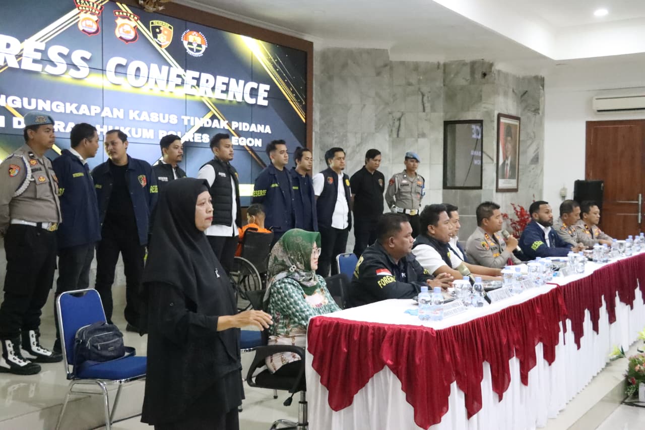 Press conference tersebut disampaikan oleh Ditreskrimum Polda Banten Kombes Pol Dian Setyawan didampingi Kapolres Cilegon AKBP Dr. Martua Raja Taripar Laut Silitonga, Plh. Kabid Humas Polda Banten AKBP Meryadi, Wakapolres Cilegon Kompol Arief Nazarudin, Kasubdit Jatanran Ditreskrimum Polda Banten Kompol Yeremia Iwo, Kasat Reskrim Polres Cilegon AKP Yoga Tama, Ka Instalasi Forensik Modikolegal RSUD Cilegon Dr. Baeti Adhayati SP FM, Puslabfor Polri Kompol Irfan Rofik.