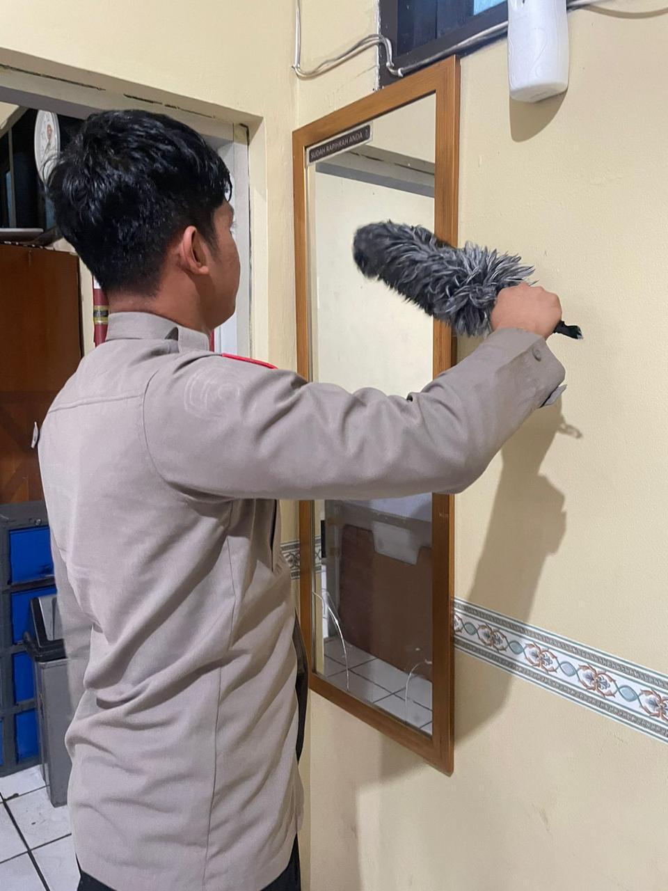 bersih-bersih ruangan dalam rangka mendukung Program Prioritas kapolda Banten