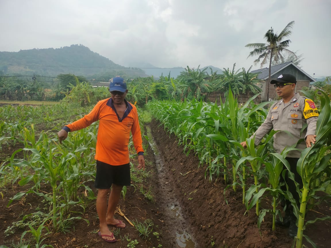 Anggota binmas polres Cilegon melaksanakan tugas panen jagung