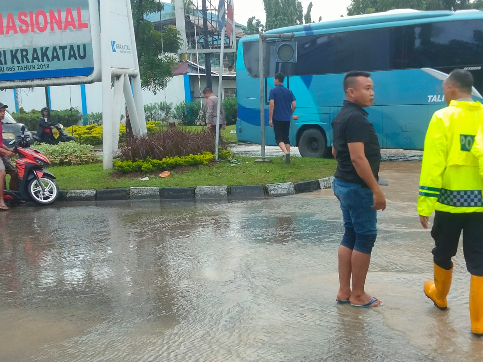 Dalam upaya penanganan dampak Banjir/ Genangan Air di Jalan Raya Ciwandan – Anyer didepan Koramil Ciwandan Dan kawasan Kiec II Kelurahan Tegal Ratu Kecamatan Ciwandan Kota Cilegon dengan ketinggian debit air 40 cm sehingga jalur 2 (dua) arah tidak dapat dilintasi oleh kendaraan baik R2 maupun R4 pribadi, tuturnya.