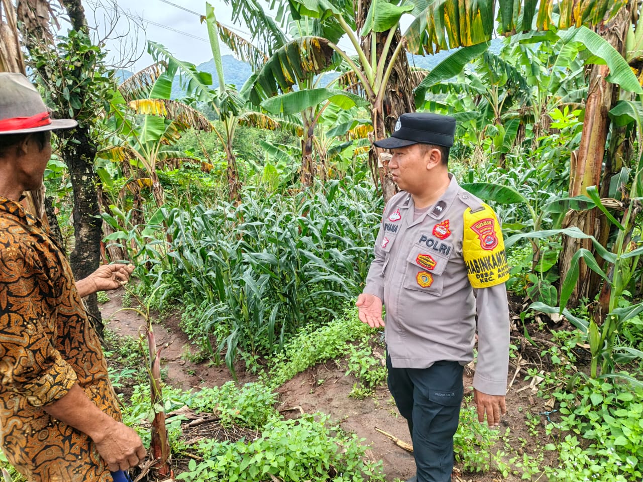 Dalam kegiatan monitoring ini, Bhabinkamtibmas meninjau langsung kondisi lahan jagung.