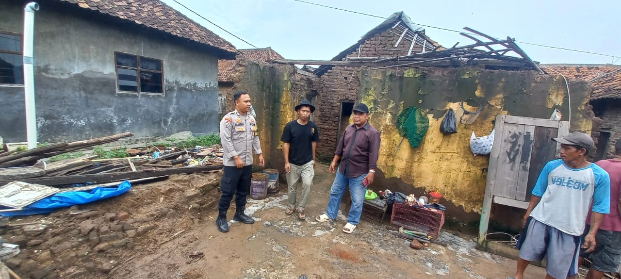 Cilegon - Bhabinkamtibmas Kelurahan Tegal Ratu, Brigadir Dede Abu, langsung melakukan pengecekan ke lokasi kejadian rumah rubuh di Lingkungan Kubang Saron RT 004 RW 002 Kelurahan Tegal Ratu Kecamatan Ciwandan Kota Cilegon.