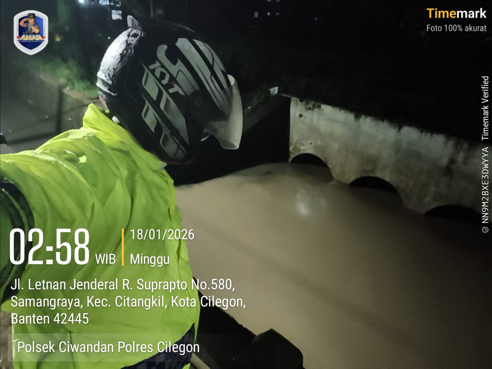 Cilegon - Dalam rangka antisipasi bencana alam personil Polsek ciwandan mengecek debit air di beberapa titik aliran sungai salah satunya yaitu kalimuk RT 005 RW 006 Kelurahan samang Raya Kecamatan citangkil Kota Cilegon, Sabtu (17/01/2026).