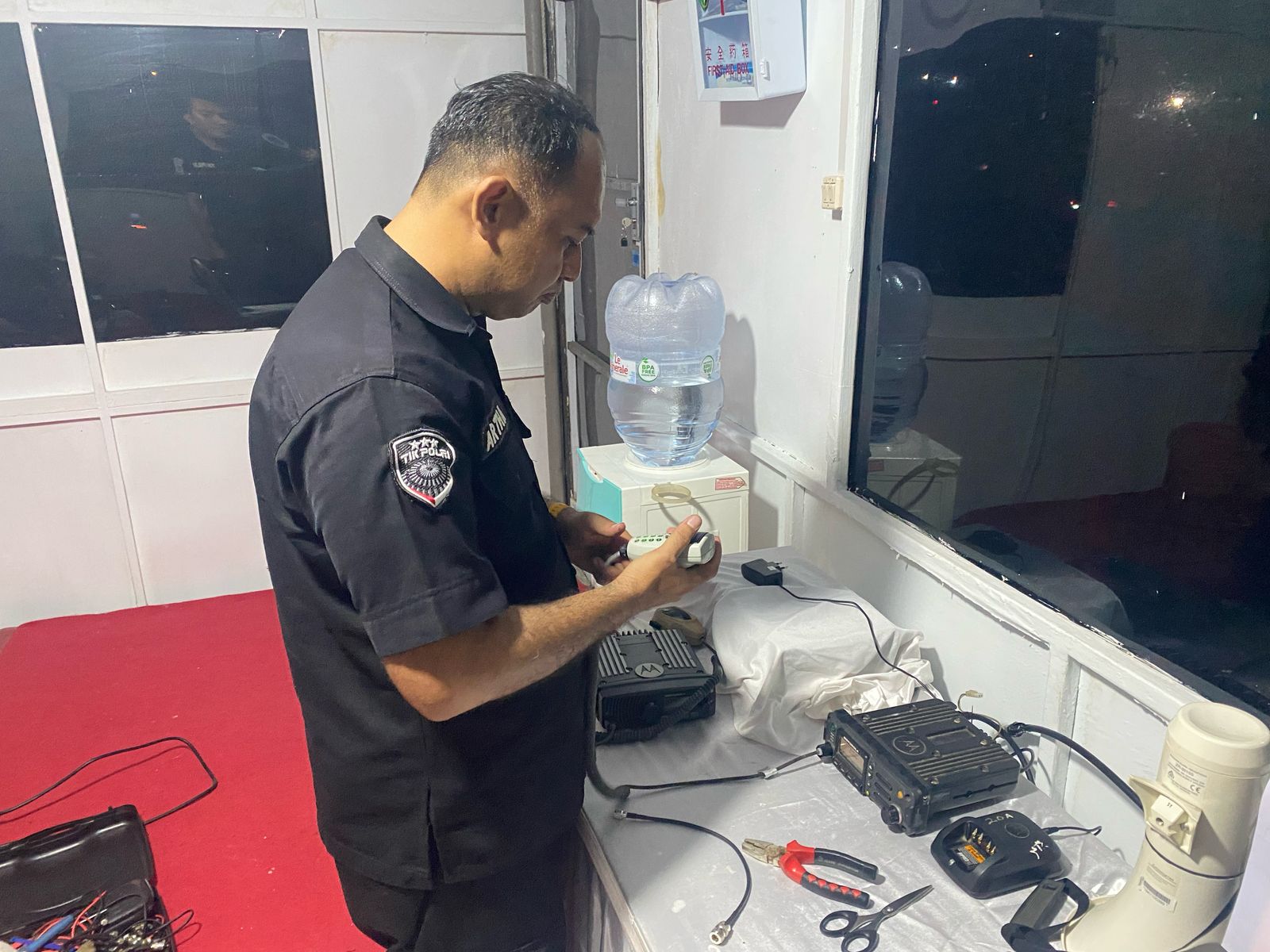 Anggota Tik Polres Cilegon Menyiapkan Sarana dan Prasarana Alkom Dalam pelaksanaan tugas tersebut anggota TIK Polres Cilegon yang bertanggung jawab untuk menyiapkan peralatan sarana alkom berupa handy talky. Selain itu agar di tidak ada gangguan pada jaringan, sebelum pelaksanaan anggota TIK melakukan pemeriksaan terhadap sarana dan prasarana tersebut . Satu jam sebelum sarana alkom digunakan. Kapolres Cilegon AKBP. DR. MARTUA RAJA TARIPAR LAUT SILITONGA. melalui Kasi TIK AIPTU Suwanto, S.H. menyampaikan bahwa “untuk menunjang kelancaran penyampaian informasi anggota TIk Polres Cilegon selalu memeriksa sarana dan prasarana tersebut, sebelum maupun pada saat pelaksanaan akan selalu di monitor”