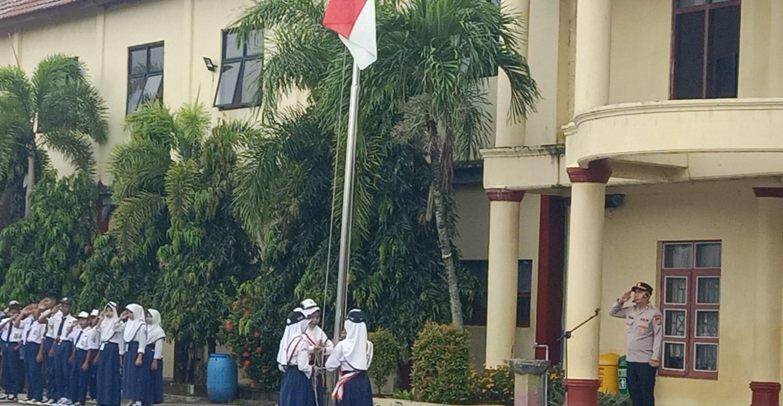 Kapolres Cilegon Polda Banten AKBP Dr. Martua Raja Taripar Laut Silitonga melalui Kapolsek Anyar Polres Cilegon Polda Banten AKP Iwan Sofiyan menerangkan bahwa telah melakukan kegiatan memimpin Upacara di Sekolah SMPN 1 Anyar, serta mengimplementasikan Program Quick Wins Presisi Polri.