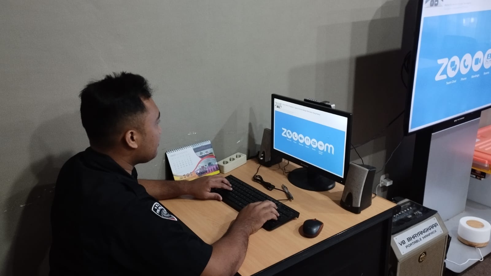 Anggota Tik Polres Cilegon Menyiapkan Sarana dan Prasarana Untuk Kegiatan Zoom meeting Dalam pelaksanaan kegiatan zoom meeting tersebut anggota TIK Polres Cilegon yang bertanggung jawab untuk menyiapkan peralatan zoom. Selain itu agar di tidak ada gangguan jaringan sebelum pelaksanaan anggota TIK melakukan pemeriksaan terhadap sarana dan prasarana tersebut . Satu jam sebelum kegiatan zoom meeting itu dimulai. Kapolres Cilegon AKBP. DR. MARTUA RAJA TARIPAR LAUT SILITONGA. melalui Kasi TIK IPTU Jajang Rohendi menyampaikan bahwa “untuk menunjang kelancaran penyampaian informasi anggota TIk Polres Cilegon selalu memeriksa sarana dan prasarana tersebut, sebelum maupun pada saat pelaksanaan akan selalu di monitor”