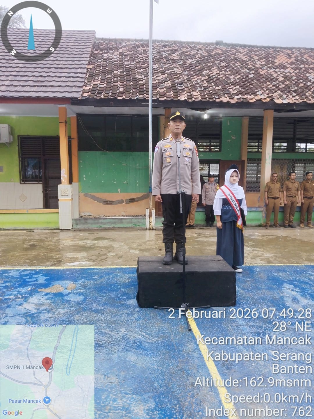 Mancak - Sebagai Pengemban Fungsi Harkamtibmas, Bhabinkamtibmas melaksanakan Kegiatan Pembina Upacara dan Silatuhrami SMPN 1 Mancak dalam rangka Program Quick Wins Presisi Kapolri dan Program Commander Wish Kapolres Cilegon "TRENDING"*. MINGGU, (02/02/2026).