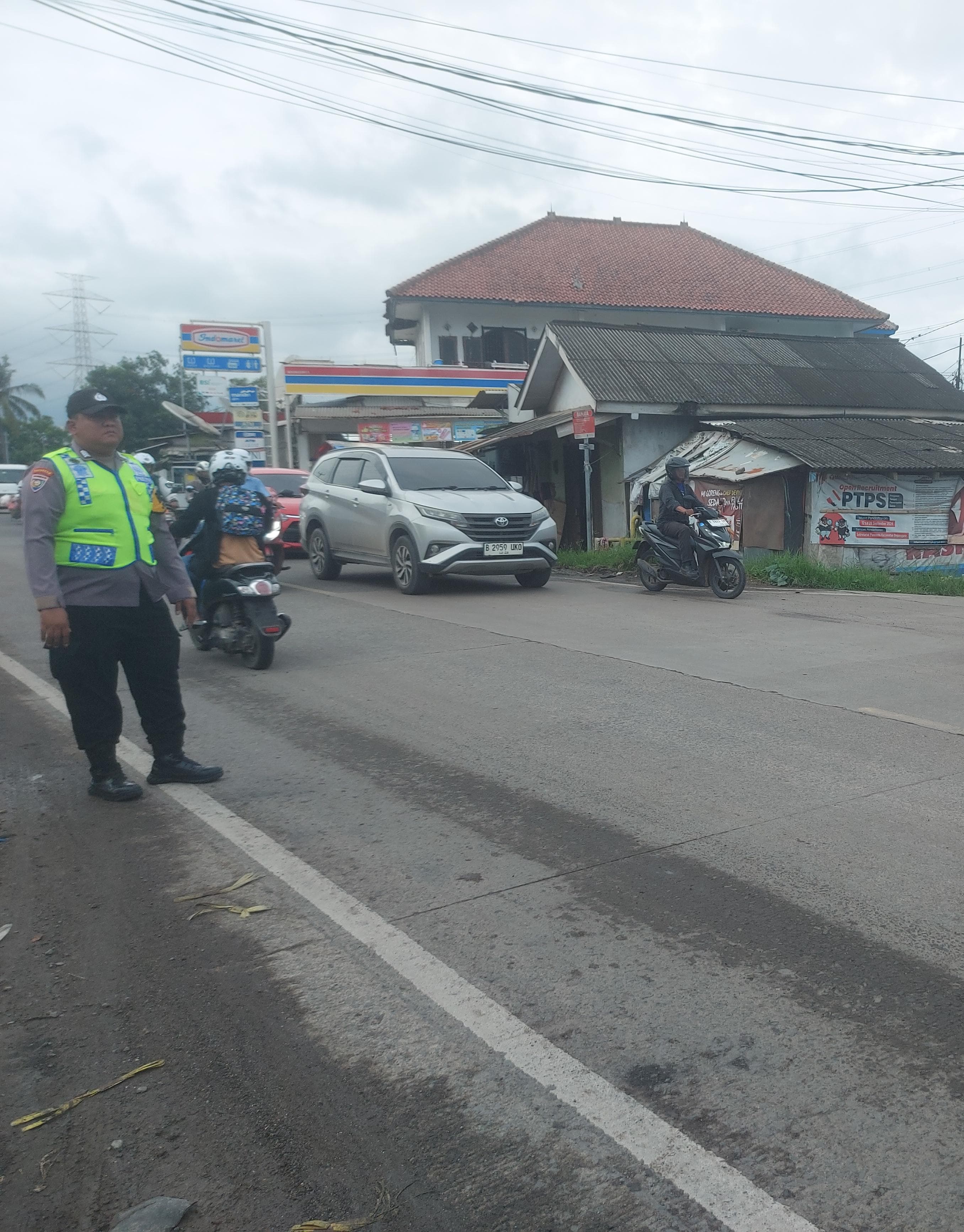 Bripka Tri Handoko dan Bripka Heru Bhabinkamtibmas Laksanakan Strong Poin Pagi Jln Raya Wadas Bojonegara