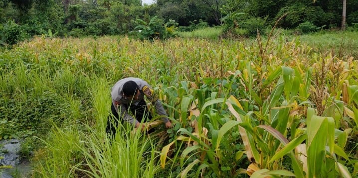 Personil Bhabinkamtibmas Polsek Purwakarta Polres Cilegon Cek Kondisi Tanaman Jagung di Kelurahan Kotabumi