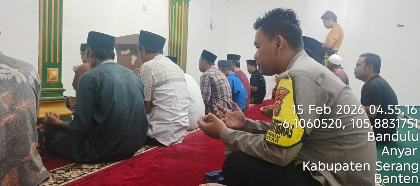 “Dalam kegiatan tersebut, Personil Polsek Anyar berbaur dengan jemaah masjid dalam melaksanakan shalat subuh berjamaah. Setelah itu, dilakukan dialog interaktif antara petugas kepolisian dan masyarakat untuk mendengarkan aspirasi serta memperoleh masukan terkait dengan situasi keamanan dan ketertiban di lingkungan sekitar,” tambah Kapolsek.