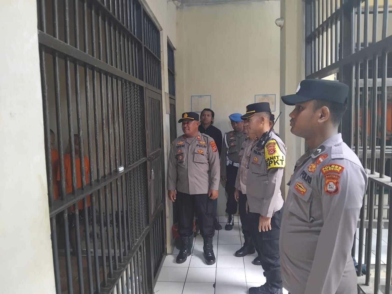 Pelaksanaan pengecekan ruangan tahanan Polres bersama piket Jaga tahanan mengecek secara keseluruhan kondisi ruang tahanan. Dalam pengecekan langsung kepada penghuni tahanan, menanyakan tentang kondisi dan keadaan para tahanan.