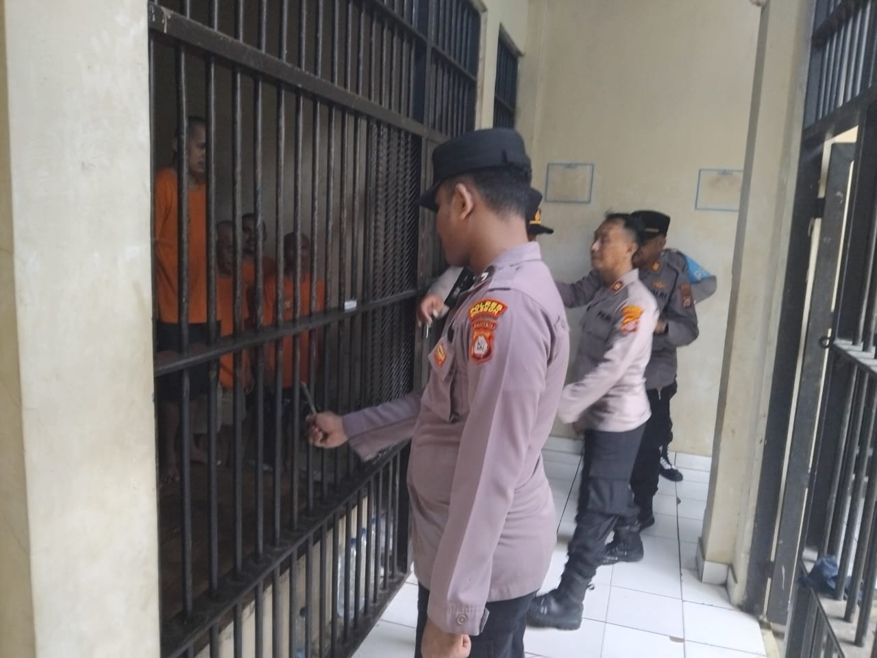 Pelaksanaan pengecekan ruangan tahanan Polres bersama piket Jaga tahanan mengecek secara keseluruhan kondisi ruang tahanan. Dalam pengecekan langsung kepada penghuni tahanan, menanyakan tentang kondisi dan keadaan para tahanan.
