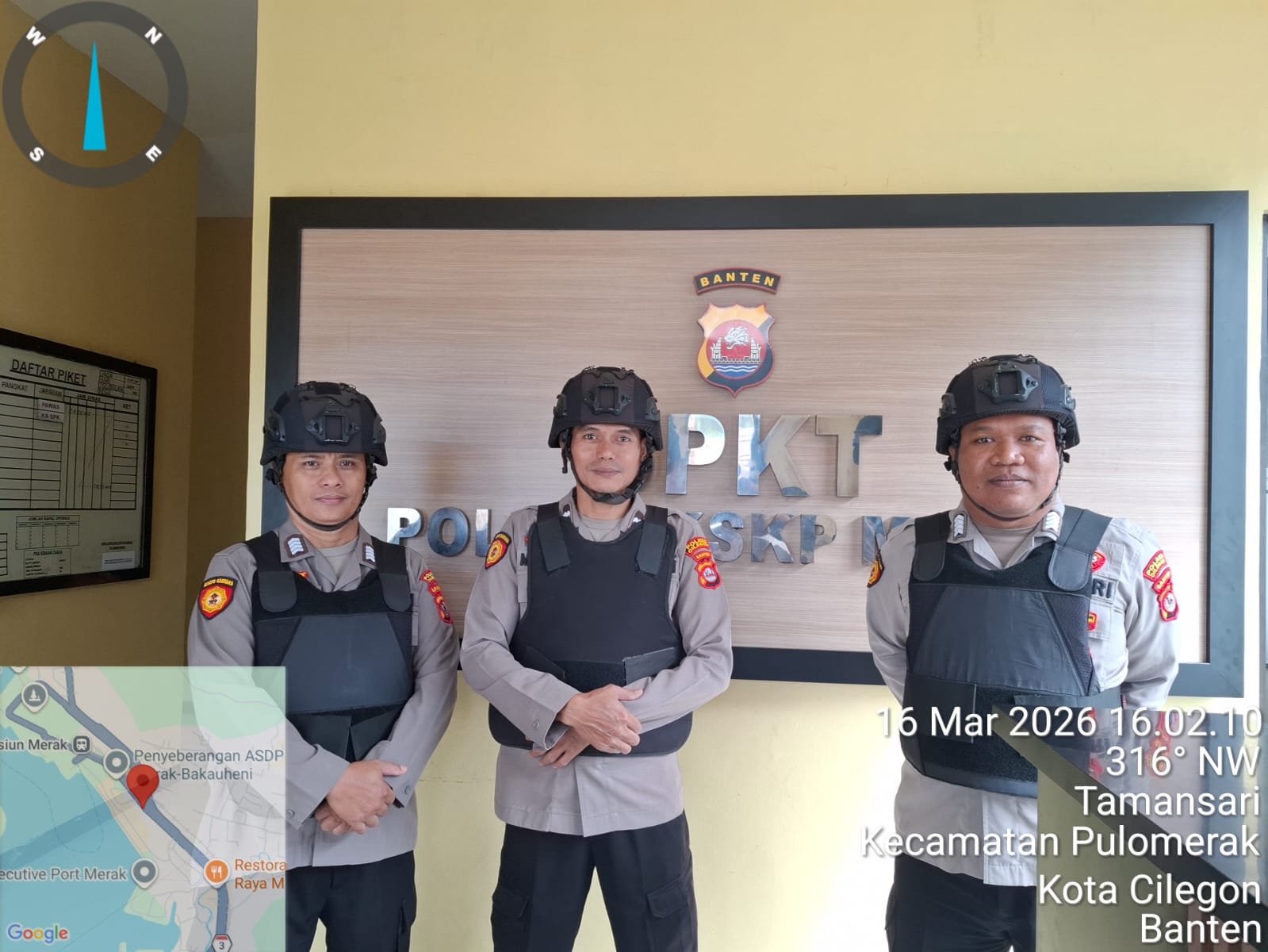 Cilegon - Personel piket jaga Polsek Kskp Merak Polres Cilgon Polda Banten melaksanakan siaga 1 Polsek pelaksanaan Sispam Mako oleh piket siaga dipimpin oleh Kspk Polsek Kskpy Merak Polres Cilegon Polda Banten, Senin (16/03/2026).