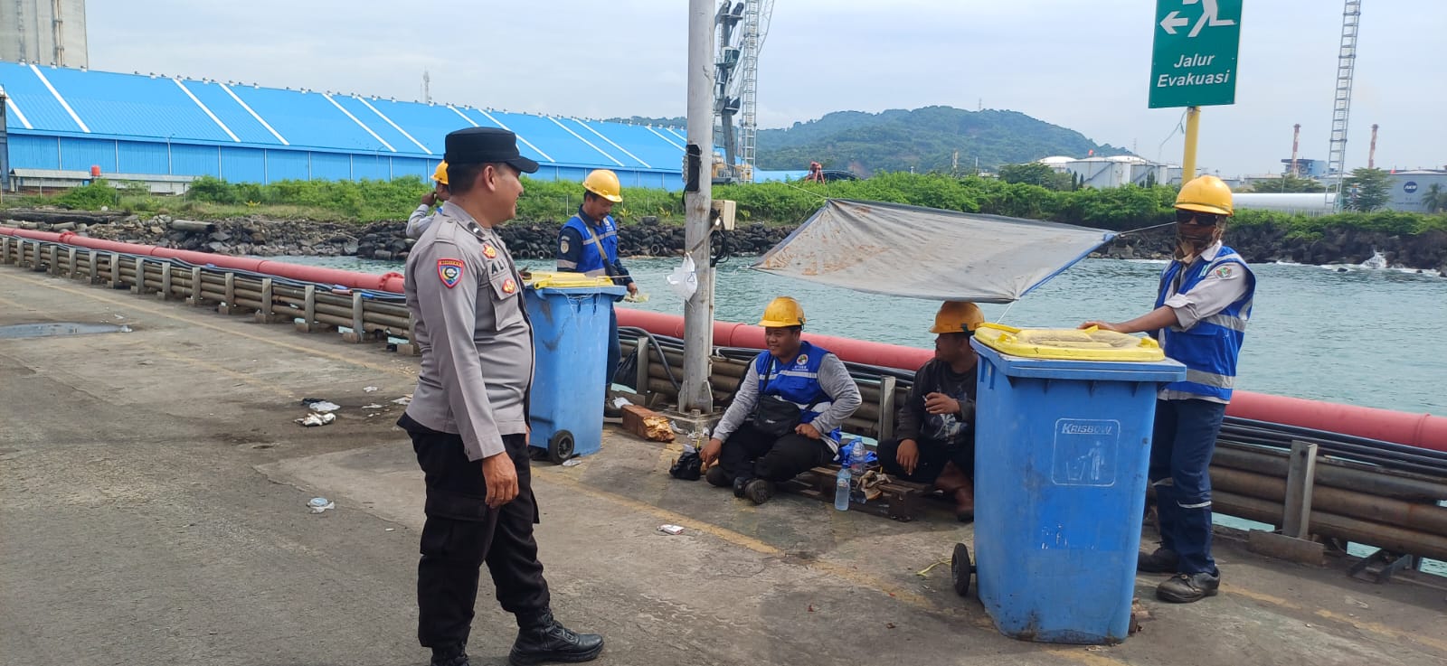 Personil Bhabinkamtibmas Polsek KP Banten Berbincang dengan Karyawan Pelabuhan