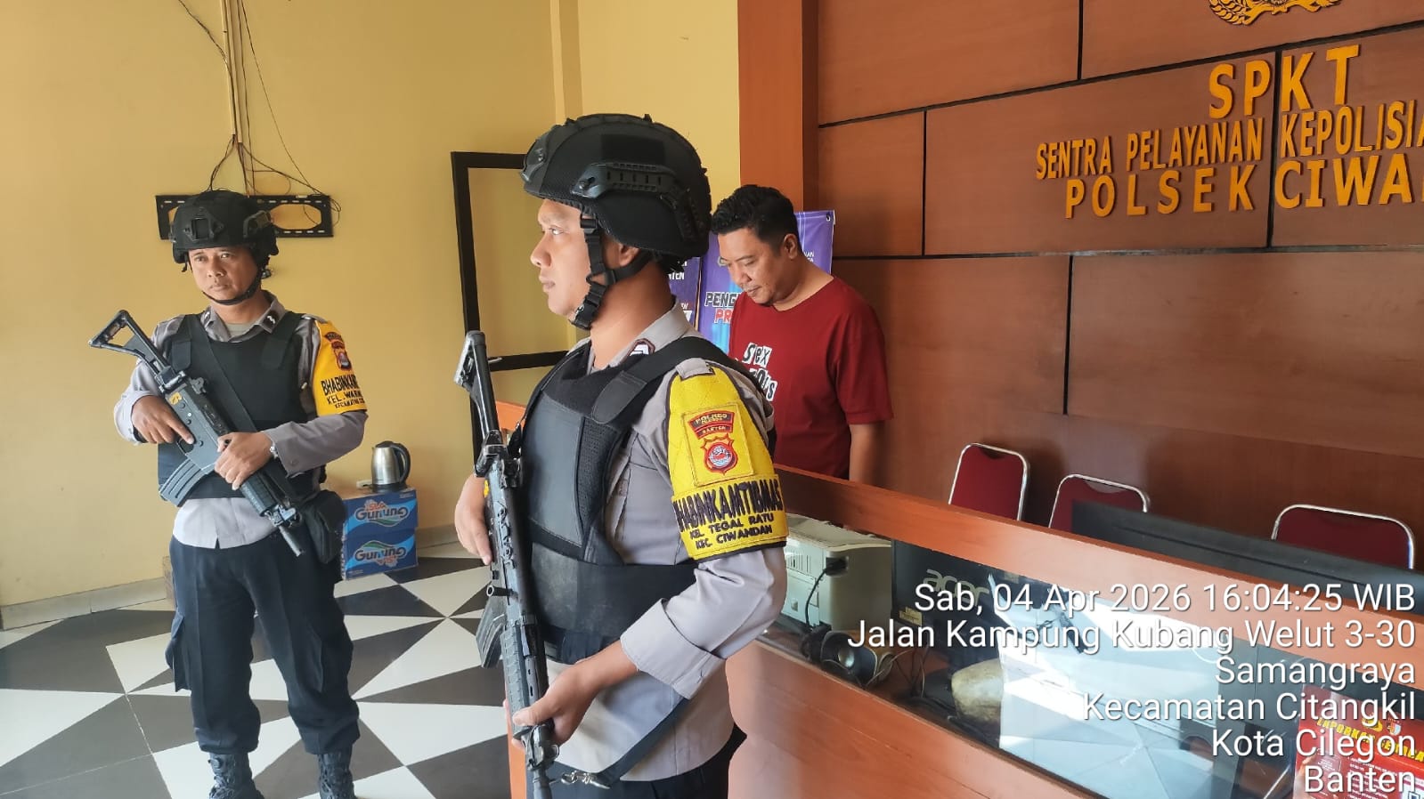 Cilegon - Guna mengantisipasi adanya potensi ancaman dan gangguan terhadap keamanan kantor maupun keselamatan personel piket jaga, Personil Polsek Ciwandan Polres Cilegon Polda Banten selalu tingkatkan kesiapsiagaan dan kewaspadaan dengan rutin menggelar kegiatan Sistem Pengamanan Mako (Sispam Mako), Sabtu (04/04/2026).