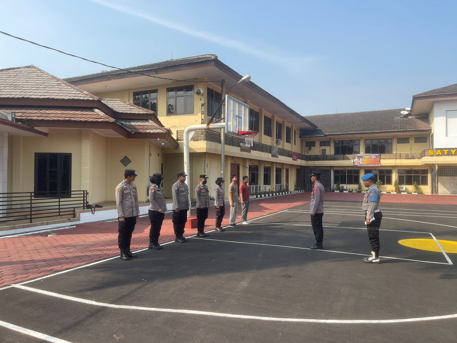 Polres Cilegon Pengechekan kehdiran anggota yang sedang melaksanakan kegiatan apel peleton