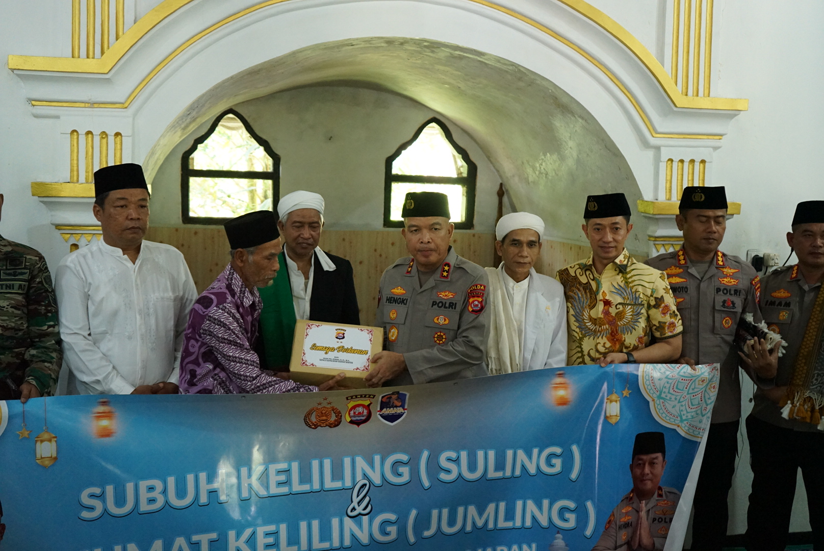 Cilegon –Kapolres Cilegon AKBP Dr Martua Raja Taripar Laut Silitonga S.H S.IK M.S.I mendampingi Kapolda Banten Irjen Pol Hengki S.IK,M.H melaksanakan kegiatan Salat Jumat Keliling (Jumling) di Masjid Miftahul Huda, Pondok Pesantren TQN Al-Mubarok, Kampung Pasir Angin, Desa Cinangka, Kecamatan Cinangka, Kabupaten Serang ,Jumat 10/4/26 Kegiatan tersebut diikuti oleh para Pejabat Utama Polda Banten dan pejabat utama Polres Cilegon, tokoh agama, tokoh masyarakat, serta para jamaah salat Jumat. Dalam kesempatan tersebut, Kapolda Banten menyampaikan bahwa program Salat Jumat Keliling merupakan salah satu upaya Polri untuk lebih mendekatkan diri dengan masyarakat sekaligus mempererat silaturahmi. “Program Salat Jumat Keliling ini merupakan ikhtiar kami untuk mempererat silaturahmi dan menghadirkan Polri di tengah masyarakat, tidak hanya dalam tugas, tetapi juga berbagi rasa dalam suka dan duka,” ujar Kapolda Banten. Kapolda Banten juga menyampaikan bahwa situasi kamtibmas di wilayah Banten saat ini dalam keadaan aman dan kondusif. “Alhamdulillah, situasi kamtibmas di Banten saat ini aman dan kondusif, sehingga masyarakat dapat melaksanakan ibadah dengan tenang,” lanjutnya. Selain itu, Kapolda Banten mengingatkan bahwa ke depan tantangan kamtibmas akan semakin kompleks seiring perkembangan teknologi dan informasi. “Kami menghimbau masyarakat agar waspada terhadap penyebaran hoaks, ujaran kebencian, provokasi isu SARA, kejahatan berbasis teknologi, serta penyalahgunaan narkoba,” tegasnya. Lebih lanjut, Kapolda turut mengajak masyarakat untuk tidak mudah terprovokasi dan lebih bijak dalam menggunakan media sosial, serta menjaga persatuan dan kerukunan. “Mari kita bersama-sama menjaga persatuan dan meningkatkan toleransi antar umat beragama demi terciptanya situasi yang aman dan damai,” tambahnya. Diakhir, Kapolda Banten mengajak masyarakat untuk memanfaatkan layanan kepolisian. “Saya mengajak seluruh masyarakat untuk memanfaatkan layanan kepolisian, salah satunya layanan Call Center 110 yang aktif 24 jam secara gratis. Melalui layanan ini, masyarakat dapat dengan mudah melaporkan setiap gangguan kamtibmas maupun kejadian yang membutuhkan kehadiran polisi, sehingga dapat segera ditindaklanjuti secara cepat, tepat oleh petugas,” tutup Kapolda Banten. Hadir dalam kegiatan tersebut untuk.pejabat utama Polda Banten 1). Dirreskrimum Polda Banten KOMBES POL. DIAN SETYAWAN, S.H., S.I.K., M.Hum 2). Dirbinmas Polda Banten KOMBES POL IMAM TARMUDI, S.I.K., M.H. 3). Dirlantas Polda Banten Kombes Pol. Arief Kurniawan, S.I.K. 4). Kabid Humas Polda Banten KOMBES POL. Maruli Ahiles Hutapea, S.I.K. 5). Kabid Propam Polda Banten KOMBES POL. MURWOTO, S.H., S.I.K., M.H. 6). Dirintel Polda Banten KOMBES POL. ATOT IRAWAN, S.I.K., M.M 8). Kapolres Cilegon AKBP Dr. MARTUA RAJA TARIPAR LAUT SILITONGA, S.H, S.Ik, M.Si. Pejabat Utama Polres Cilegon 1). Wakapolres Cilegon KOMPOL M. RIZKI SALATUN, S.IK. 2). Kabag SDM Polres Cilegon KOMPOL ENTANG CAHYADI, S.H., M.A 3). Kabaglog Polres Cilegon AKP SUDIBYO WARDOYO, S.H, M.M 4). Kasat Sabhara Polres Cilegon AKP AGUS HENDRATNO 5). Kasat Lantas Polres Cilegon AKP RIDWAN S.TK., S.I.K., M.H 6). Kasi Humas Polres Cilegon AKP SIGIT DERMAWAN, S.H. 7). Kasie Propam Polres Cilegon AKP HERI SUSANTO, S.H, M.M. 8). Kapolsek Cinangka AKP RUSNATA, S.H., S.KOM. 9). Kasiwas Polres Cilegon IPTU HARIS SURAHMAN 10). Kasat Intelkam Polres Cilegon IPTU RISWAN WIJAYA, S.H Tokoh masyarakat 1). Pimpinan Ponpes TQN Al Mubarok KH.RD.M.YUSUF PRIANADI,SH 2). Tokoh Agama Pimpinan Ponpes Nur Sejati KH.DAMANHURI 3). Ketua DPC NU Kec.Cinangka USTADZ.DAMAN