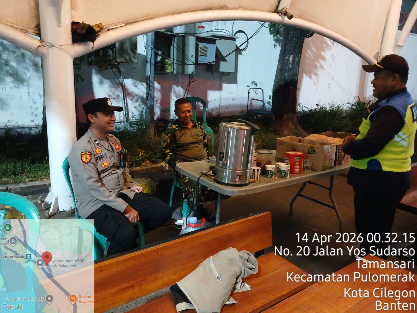 Cilegon - Personil Polsek Kskp Merak Polres Cilegon melaksanakan patroli di kawasan pelabuhan merak memberikan rasa aman dan damai, Selasa (14/04/2026)