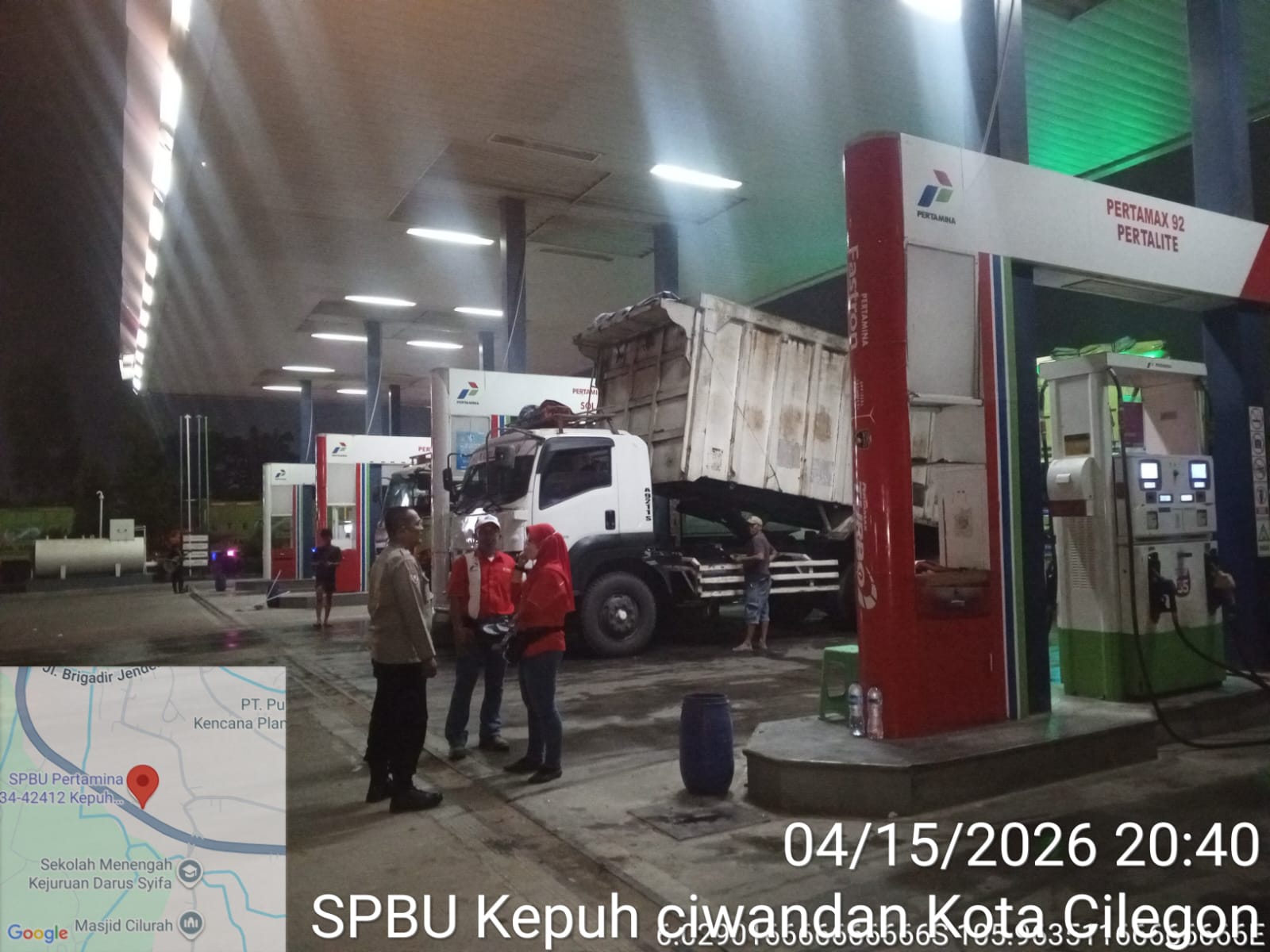 Cilegon - Kepolisian Polsek Ciwandan Polres Cilegon Polda Banten, melakukan pengecekan stok Bahan Bakar Minyak (BBM) di dua SPBU di wilayah Ciwandan, Cilegon, Kamis (16/04/2026).