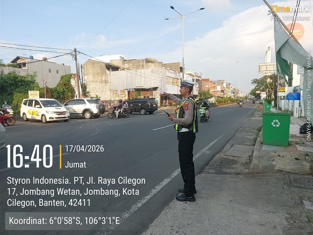 Cilegon, Satlantas Polres Cilegon Polda Banten – Berikan pelayanan kepada masyarakat Kasat lantas Polres Cilegon AKP Ridwan memerintahkan jajaran lalulintas untuk melaksanakan pengaturan lalu lintas di penggal – penggal jalan yang rawan kemacetan di Kota Cilegon, (Jumat,17/4/2026)