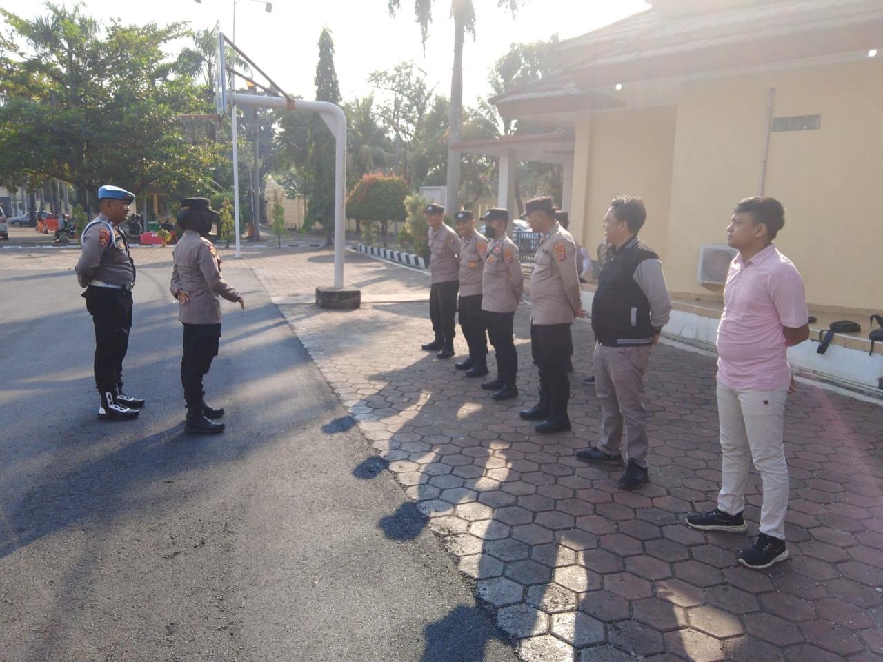 Cilegon,Polres Cilegon Polda Banten Pada minggu /19/04/2025 Pukul 08.00 Wib,Brigadir Hadi Sudrajat  melaksanakan kegiatan apel peleton kerangka dua di lapangan apel Polres Cilegon.