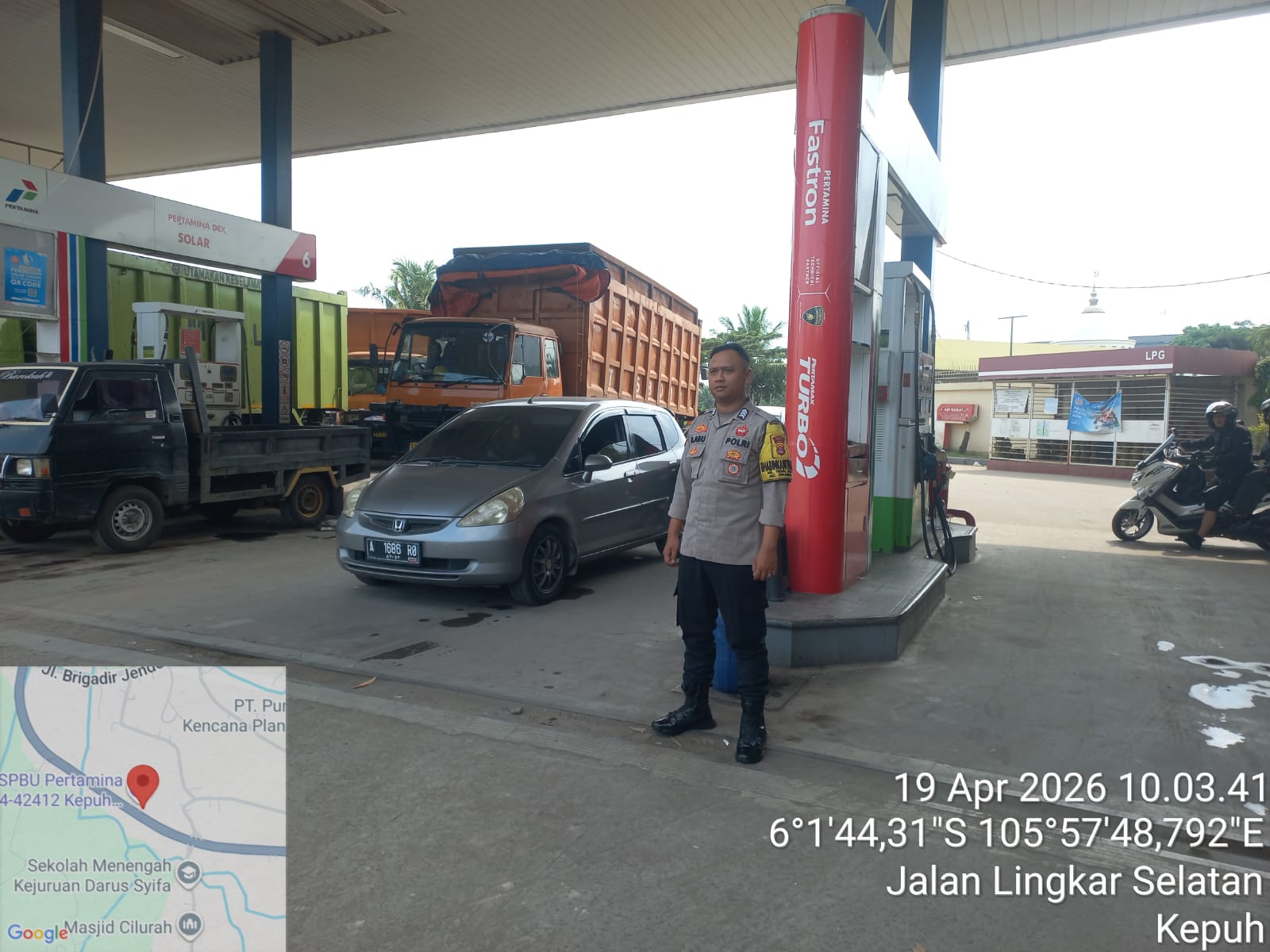 Personil Polsek Ciwandan Polres Cilegon Program Quick Wins Presisi Dalam Rangka kegiatan Kunjungan Sambang Dan DDS ke SPBU di Wilayah hukum Polsek Ciwandan Polres Cilegon & Monitoring Stok BBM. Minggu, 19/04/2026.