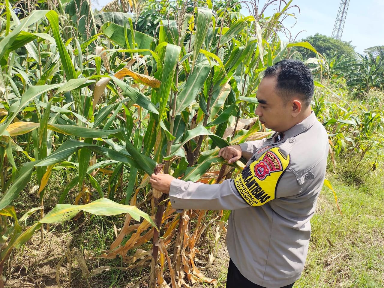 Pantau lahan jagung pok tani sinarjaya kecamatan.puloampel Desa margasari oleh Bhabinkamtibmas Polsek Puloampel