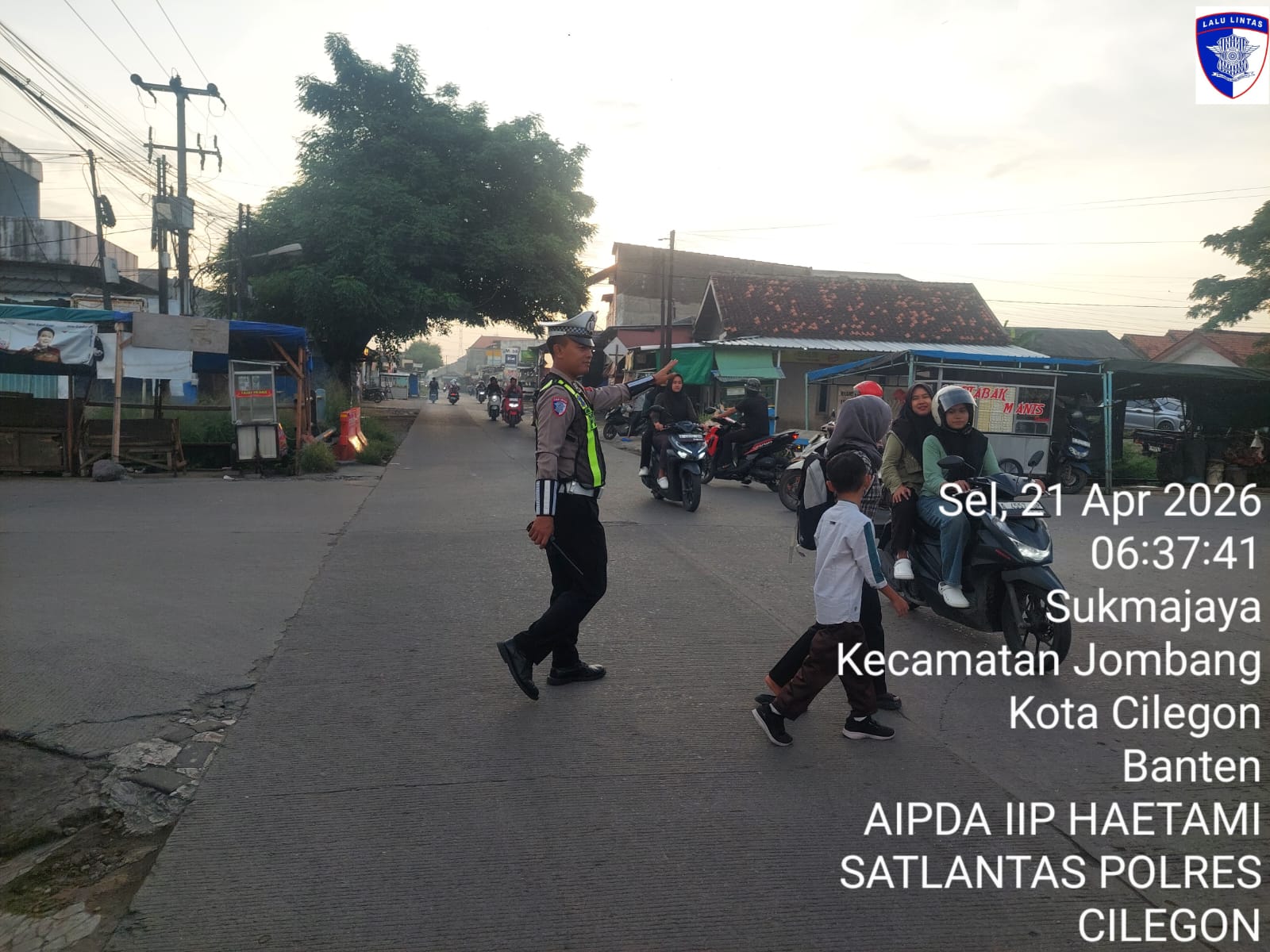 Cilegon – Polres Cilegon Polda Banten, Dalam Mewujudkan Aksi Nyata Pelayanan Kepada Masyarakat, Personil Satlantas Polres Cilegon Polda Banten Laksanakan PECAK (Pergelaran Cepat Anggota Kepolisian) Pengaturan Lalu lintas di wilayah perkotaaan terutama di titik rawan kemacetan dan kecelakaan lalu lintas, Selasa (21/04/2026).