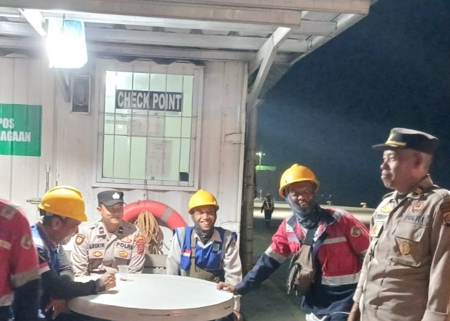 Polres Cilegon Menyapa, Personil KSKP Banten sambangi Karyawan di pelabuhan berikan himbauan kamtibmas.