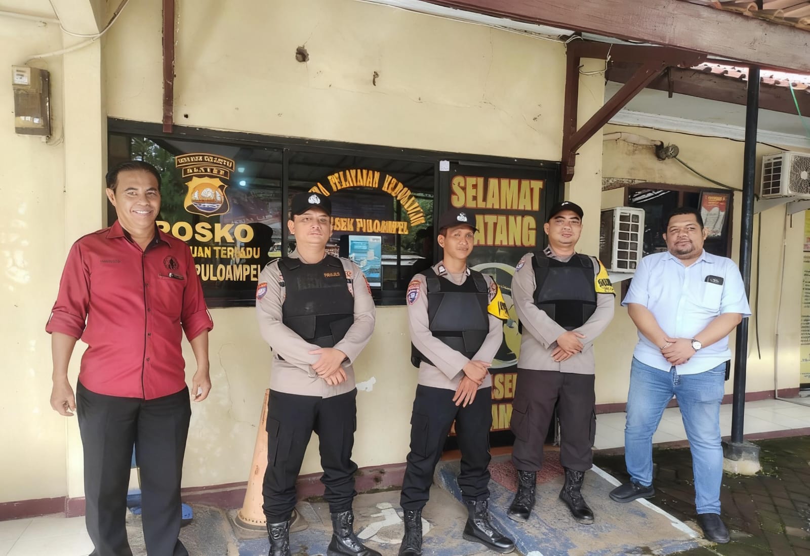Kapolres Cilegon Polda Banten AKBP Martua Raja Taripar Laut Silitonga melalui Kapolsek Puloampel IPTU JONATHAN MAMPETUA SIRAIT. membenarkan bahwa dalam rangka untuk mencegah berbagai ancaman dan gangguan pada Mako Polsek Puloampel, personel kita rutin melakukan penjagaan di pos penjagaan Mapolsek Puloampel Polres Cilegon, dimana pengamanan ini dilaksanakan 1×24 jam,” ucapnya.