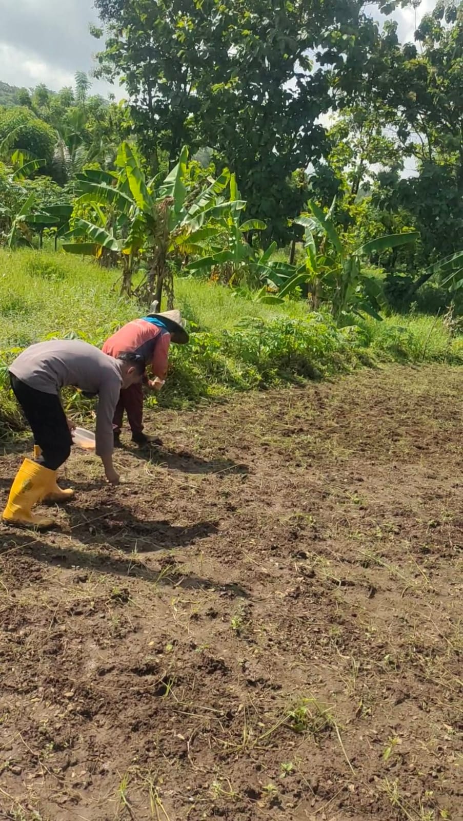 Pantau lahan jagung pok tani sinarjaya kecamatan.puloampel Desa Puloampel oleh Bhabinkamtibmas Polsek Puloampel
